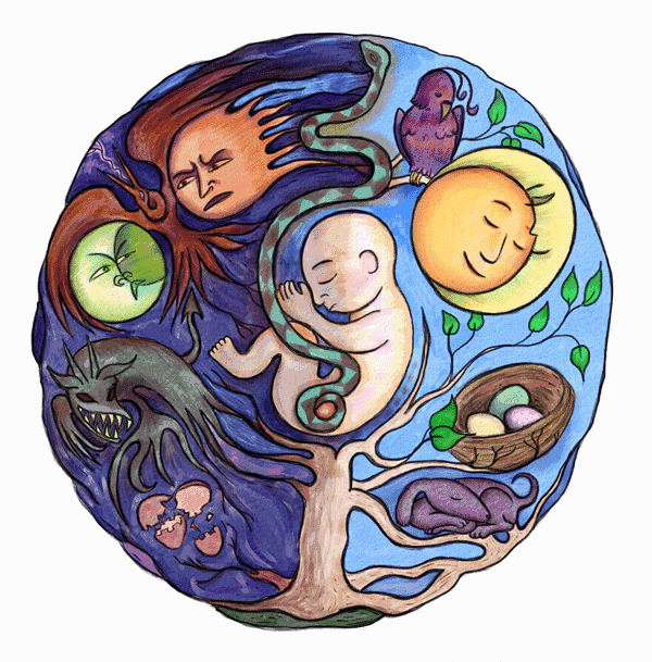 Puis les maux du premier semestre disparaissant, je redeviens plus active, prends moins de temps de repos total, pense à mon travail, mes projets, la naissance en me projetant beaucoup sur le futur. Et je ressens moins sa présence. Je lui demande pourquoi, elle me répond qu’elle est souvent occupée de son côté pour se préparer à sa nouvelle vie, son installation dans le corps, la naissance..C’est une première réponse qui me rassure. Mais elle me met aussi face à mon indisponibilité, je suis moins à l’écoute, moins ancrée et présente dans le présent, car très tournée vers le futur et l’aspect spirituel. Une des erreurs qu’on peut faire dans la spiritualité, et à laquelle je n’échappe pas, c’est bien d’oublier l’importance et le sacré du physique, du vivant, qui doit être l’objet d’une attention équilibrée. A M+4 elle a besoin aussi que je soigne le fœtus, que je lui crée un beau cocon dans mon ventre, que j’entoure d’amour sa nouvelle enveloppe de chair, pour qu’elle s’y sente bien quand elle vient. Car si toute mon attention est hors du présent et de mon corps, ce lieu devient « vide », plus froid. Elle a besoin d’y trouver un lieu d’amour, où je suis pleinement présente, pour se rassurer et avoir envie de s’incarner. Elle commence à ressentir la matérialité, la lourdeur terrestre, qui alourdissent ses pensées, avivent des peurs, des doutes, rappellent des failles, des craintes… une vulnérabilité se réveille qui appelle l’amour inconditionnel de sa nouvelle famille terrestre. Je dois aussi prendre soin de cette partie. Je veille alors à apporter plus d’attention et de tendresse à ce fœtus, cet être de chair.
