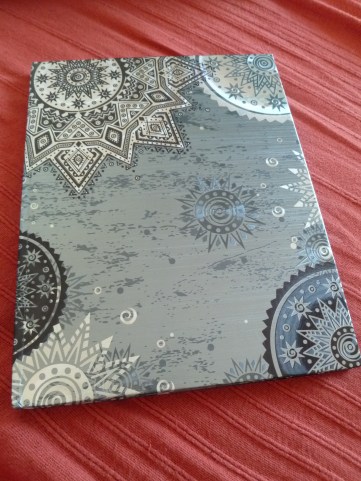 Alors pour ce livre de naissance, la meilleure optique fut de le créer moi-même, en m’inspirant du meilleur des carnets existants, et en adaptant à nos envies. Pour le choix du livre, l’inspiration m’a menée vers un sublime livre d’Or à la couverture argentée et décorée de mandalas et d’étoiles… Des symboles qui lui parlent, et qui, je le ressens, la feront rêver quand elle sera enfant et plus grande.